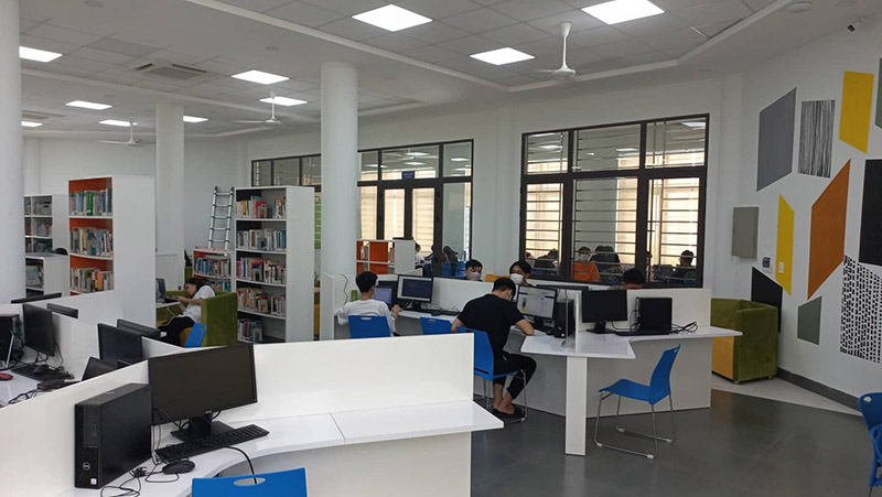 Thư viện của trường với hàng ngàn đầu sách, tài liệu tham khảo, cùng hệ thống máy tính kết nối internet tốc độ cao, tạo điều kiện thuận lợi cho sinh viên và giảng viên trong việc nghiên cứu, học tập.